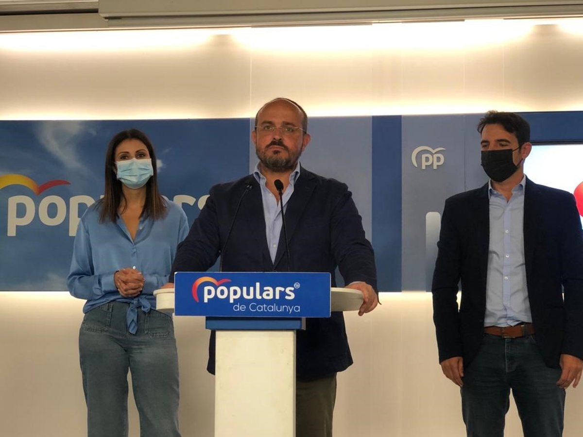 El presidente del PP catalán, Alejandro Fernández, en rueda de prensa en la sede del PP en Barcelona, a 8 de octubre de 2021. - EUROPA PRESS