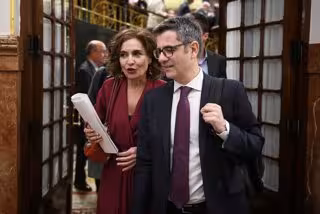 La vicepresidenta primera y ministra de Hacienda y Función Pública, María Jesús Montero (i) y el ministro de Presidencia, Justicia y Relaciones con las Cortes, Félix Bolaños (d) - Fernando Sánchez - Europa Press