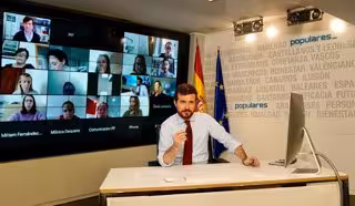 El líder del PP, Pablo Casado, ofrece una conferencia de prensa a través de la plataforma ZOOM. Madrid, 23 de marzo de 2020. - DAVID MUDARRA( PP)
