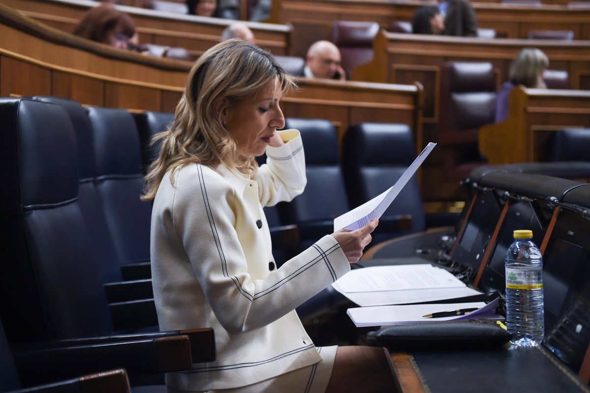 La vicepresidenta segunda y ministra de Trabajo, Yolanda Díaz, durante una sesión plenaria en el Congreso de los Diputados, a 13 de marzo de 2025, en Madrid (España). - Gustavo Valiente - Europa Press
