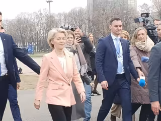 La presidenta de la Comisión Europea, Ursula von der Leyen, llega al Congreso del PPE en Bucasrest (Rumanía). - EUROPA PRESS