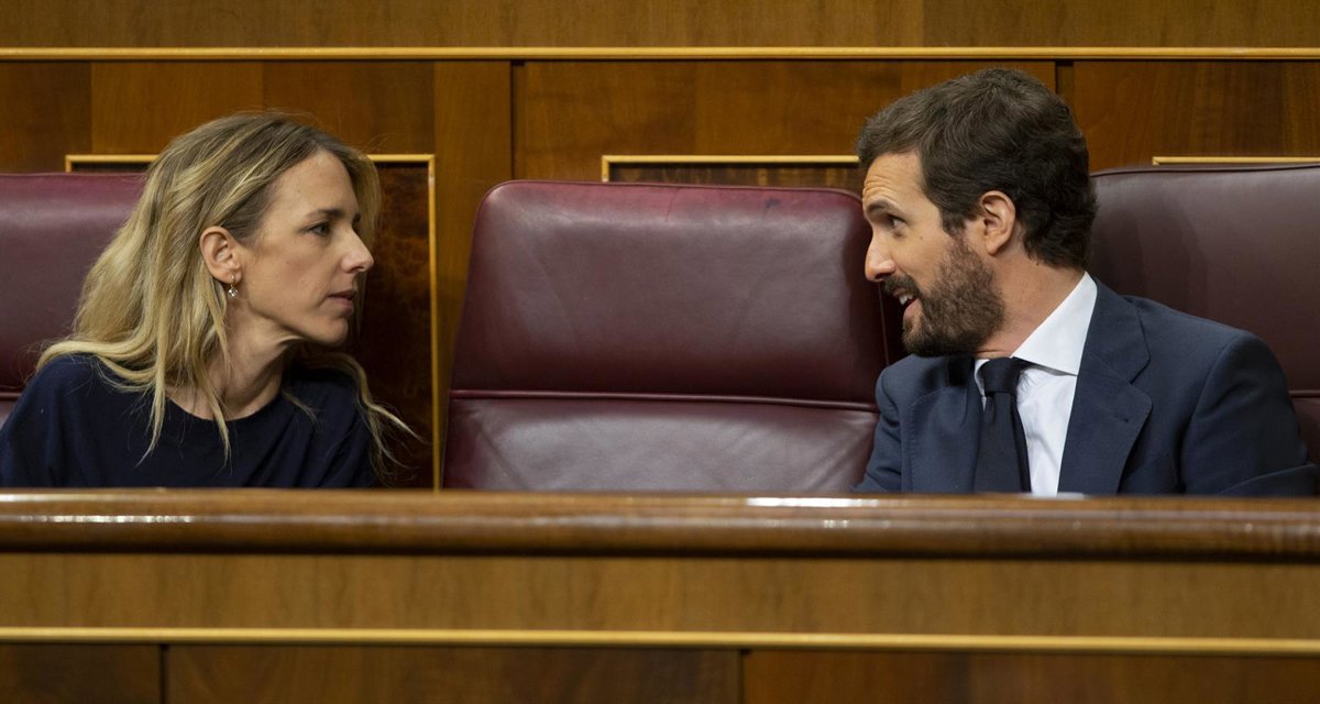 El presidente del Partido Popular, Pablo Casado, y la portavoz del Grupo Popular en el Congreso, Cayetana Álvarez de Toledo, durante una sesión plenaria en la Cámara Baja. En Madrid (España), a 17 de junio de 2020. - Ignacio Gil / Pool - Archivo