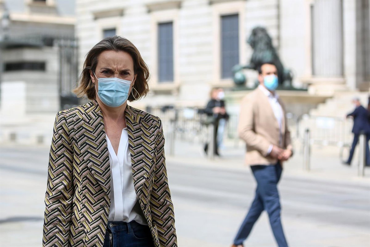 La portavoz del Grupo Parlamentario Popular en el Congreso, Cuca Gamarra, a su llegada a una reunión con familias con hijos con discapacidad en el Congreso de los Diputados, Madrid (España), a 26 de marzo de 2021. - Ricardo Rubio - Europa Press