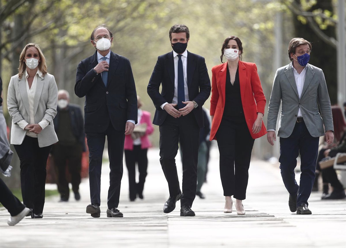 Archivo - (I-D) El presidente del PP de Madrid, Pío García-Escudero; el líder del PP, Pablo Casado; la presidenta de la Comunidad de Madrid, Isabel Díaz Ayuso; y el alcalde de Madrid, José Luis Martínez-Almeida, conversan a su llegada a la presentación - Eduardo Parra / Europa Press - Europa Press