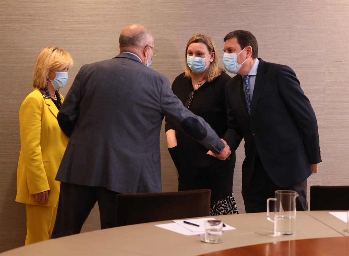Fernández Carriedo (derecha) saluda a Francisco Igea ante la mirada de Verónica Casado (izquierda) e Isabel Blanco Llamas. - CLAUDIA ALBA/EUROPA PRESS
