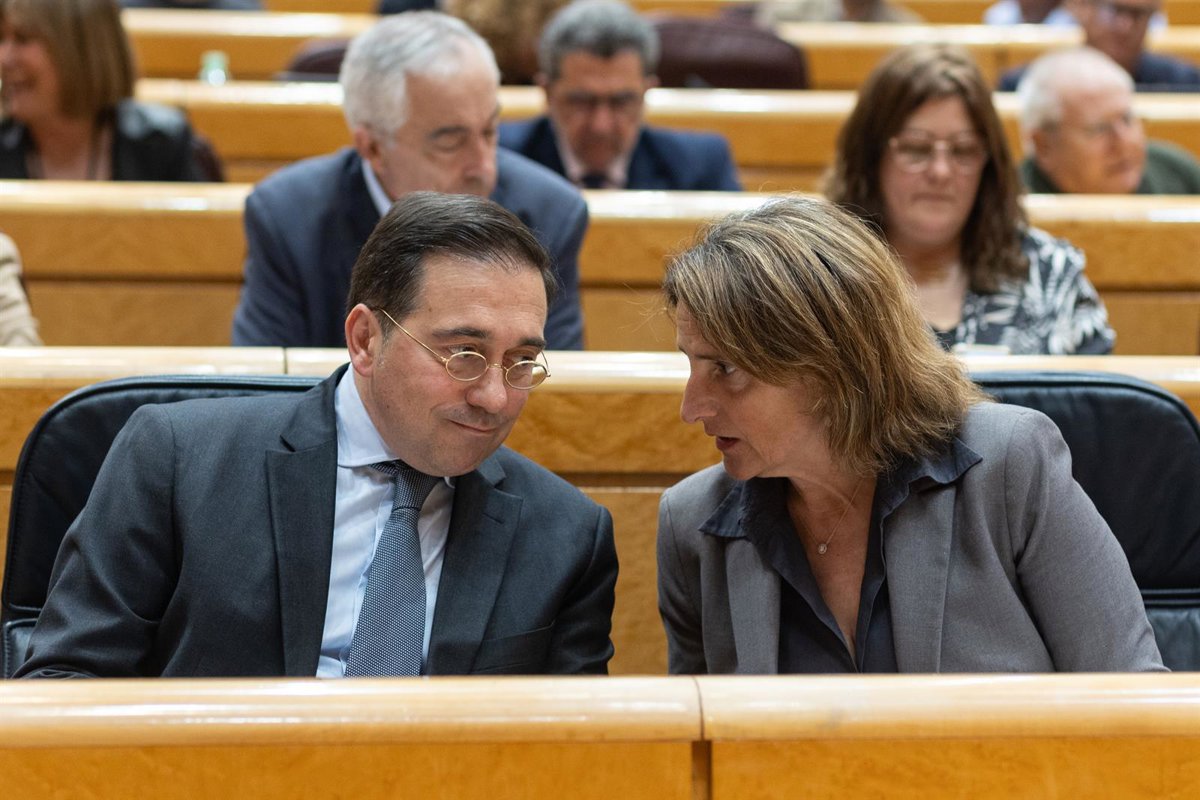 El Ministro de Asuntos Exteriores, José Manuel Albares y la vicepresidenta tercera y ministra para la Transición Ecológica y el Reto Demográfico, Teresa Ribera, durante un pleno en el Senado - Alejandro Martínez Vélez - Europa Press