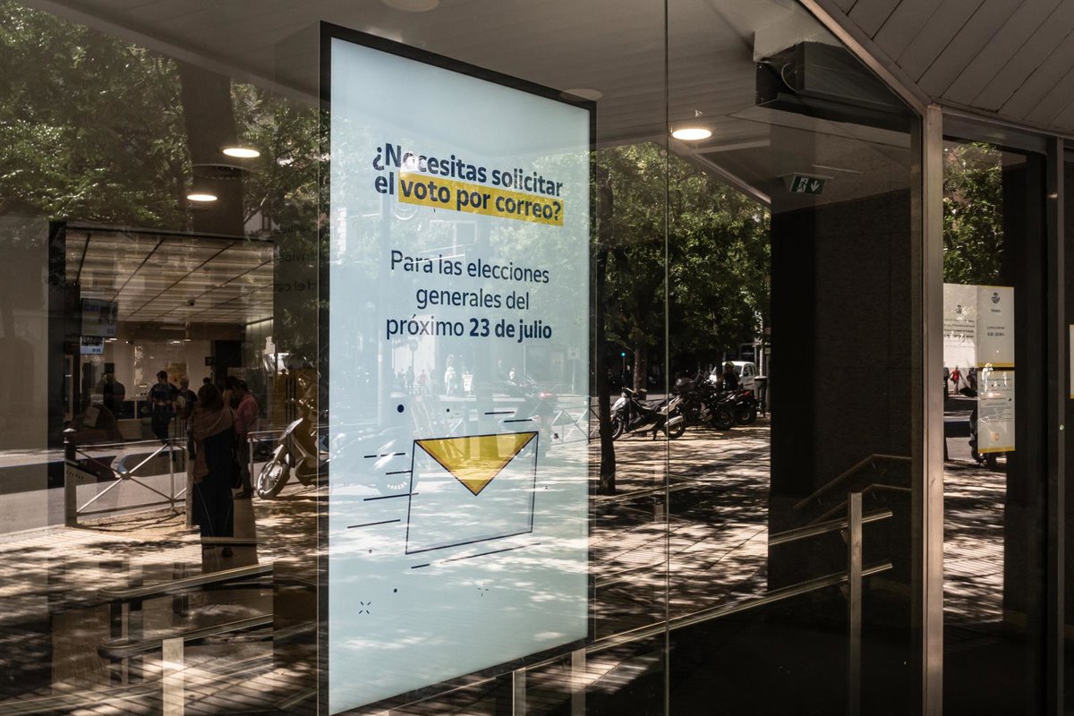 Un cartel que informa sobre el voto por correo. - Diego Radamés - Europa Press