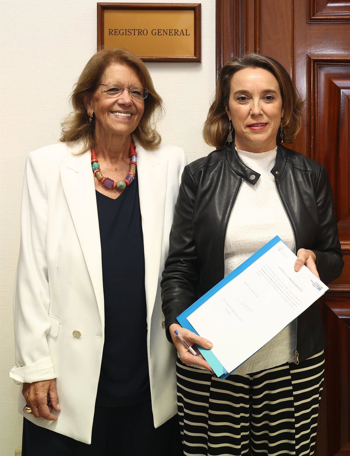 La vicesecretaria sectorial del Partido Popular, Elvira Rodríguez, y la portavoz del PP en el Congreso, Cuca Gamarra posan en la presentación de una enmienda a la totalidad a los Presupuestos en el Congreso, a 21 de octubre de 2022, en Madrid (España). - Eduardo Parra - Europa Press