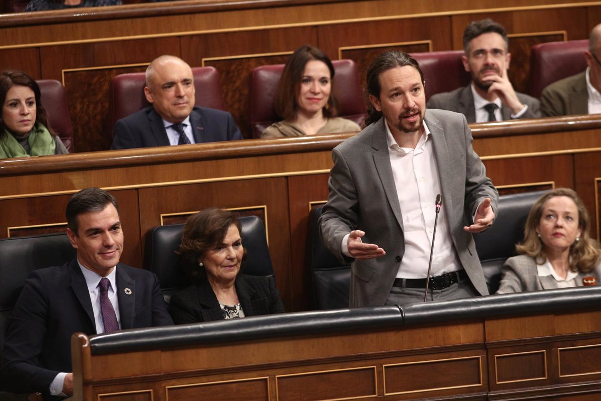 El vicepresidente segundo y ministro de Derechos Sociales y Agenda 2030; Pablo Iglesias, responde a la pregunta del secretario general del PP, Teodoro García Egea, en el Congreso. En Madrid (España), a 12 de febrero de 2020. - Eduardo Parra - Europa Press - Archivo