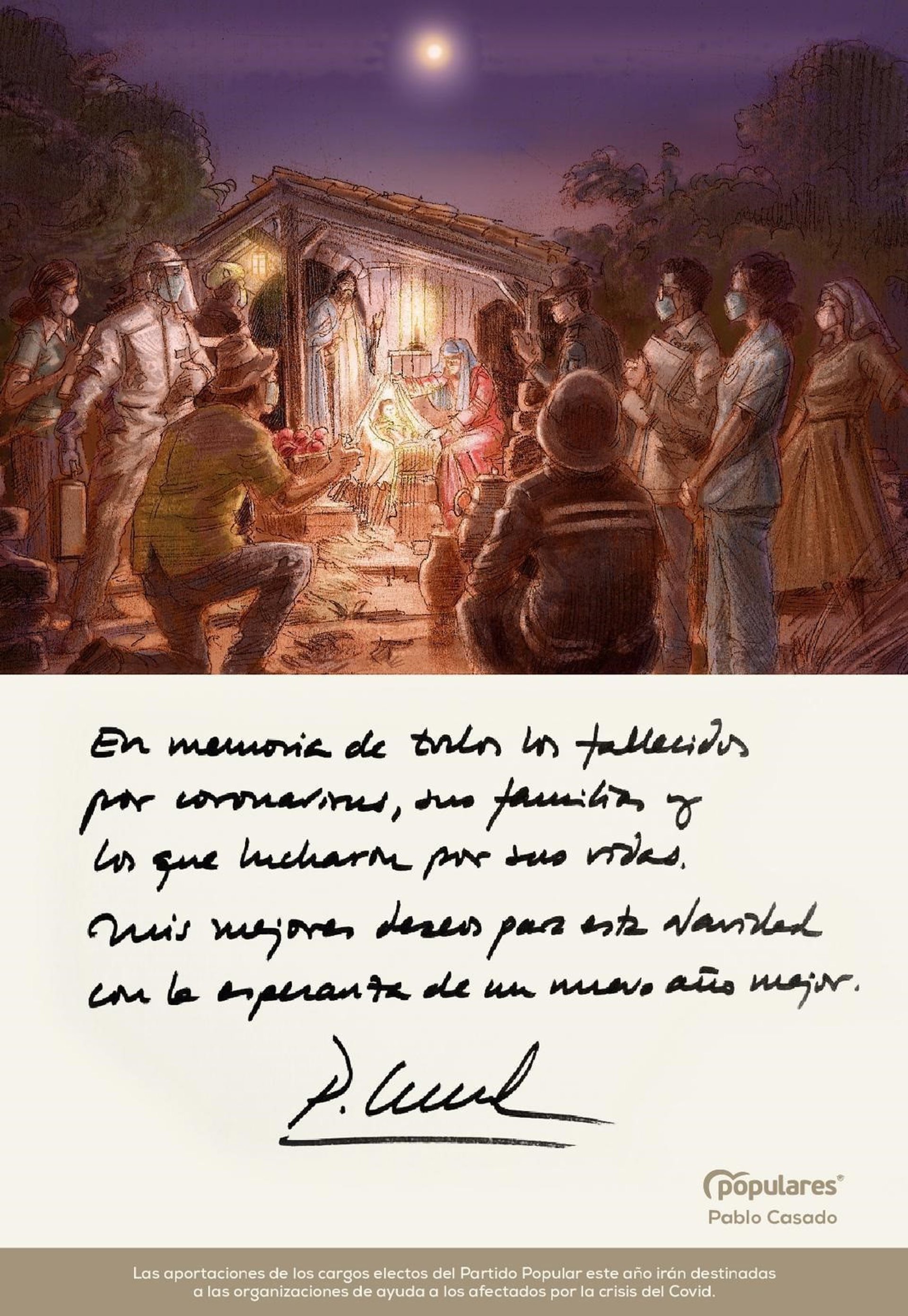 Casado ha enviado una felicitación navideña a los miembros de la formación en la que traslada que el importe recaudado en base a donaciones realizadas por los miembros del partido irá destinada este año para los afectados por la pandemia.
