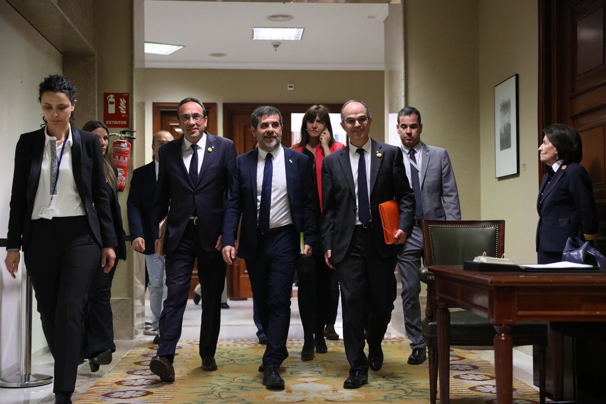 La petición para la suspensión de los diputados Oriol Junqueras, Jordi Snchez, Jordi Turull y Josep Rull, y del senador Raül Romeva será la primera que el Grupo Popular llevará a la Mesa del Congreso y a la del Senado una vez queden constituidas este martes.