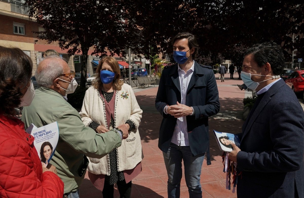El vicesecretario de Comunicación del PP, Pablo Montesinos, y la vicesecretaria de Sectorial del PP, Elvira Rodríguez, en un acto electoral ante las elecciones del 4 de mayo. En Madrid, a 30 de abril de 2021. - TAREK (PP)
