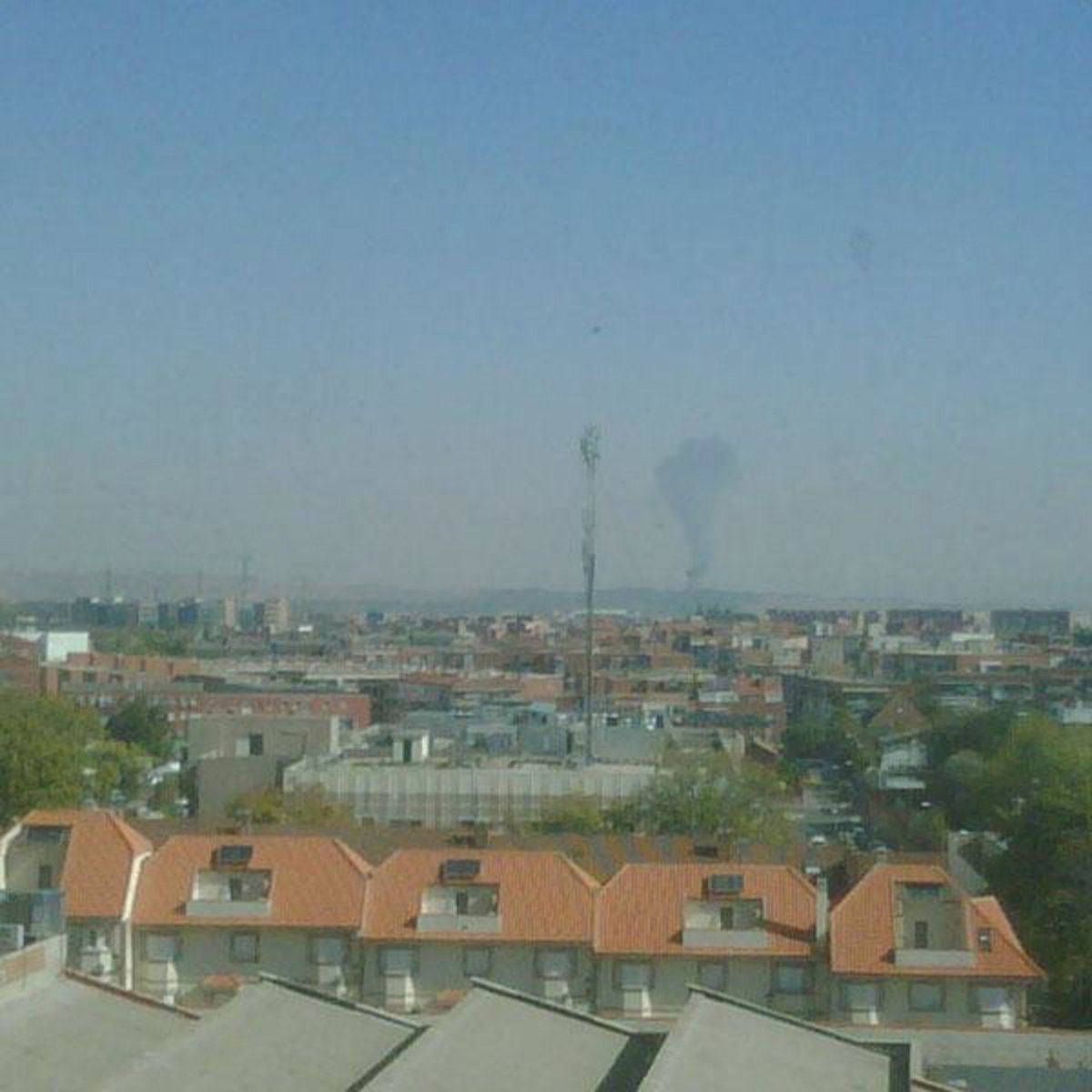 Una enorme columna de humo, visible desde gran parte del nordeste de la capital y municipios limítrofes, ha alertado este martes a los vecinos de la zona, que desconocían que el fuego procedía de unos ejercicios controlados de los Bomberos militares de la base aérea de Torrejón de Ardoz.