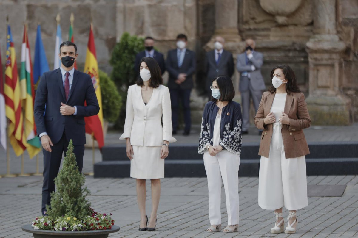 (I-d) El presidente del Gobierno, Pedro Sánchez; la presidenta del Senado, Pilar LLop; la ministra de Política Territorial y Función Pública, Carolina Darias; y la presidenta de La Rioja, Concha Andreu. - Jesús Hellín - Europa Press - Archivo