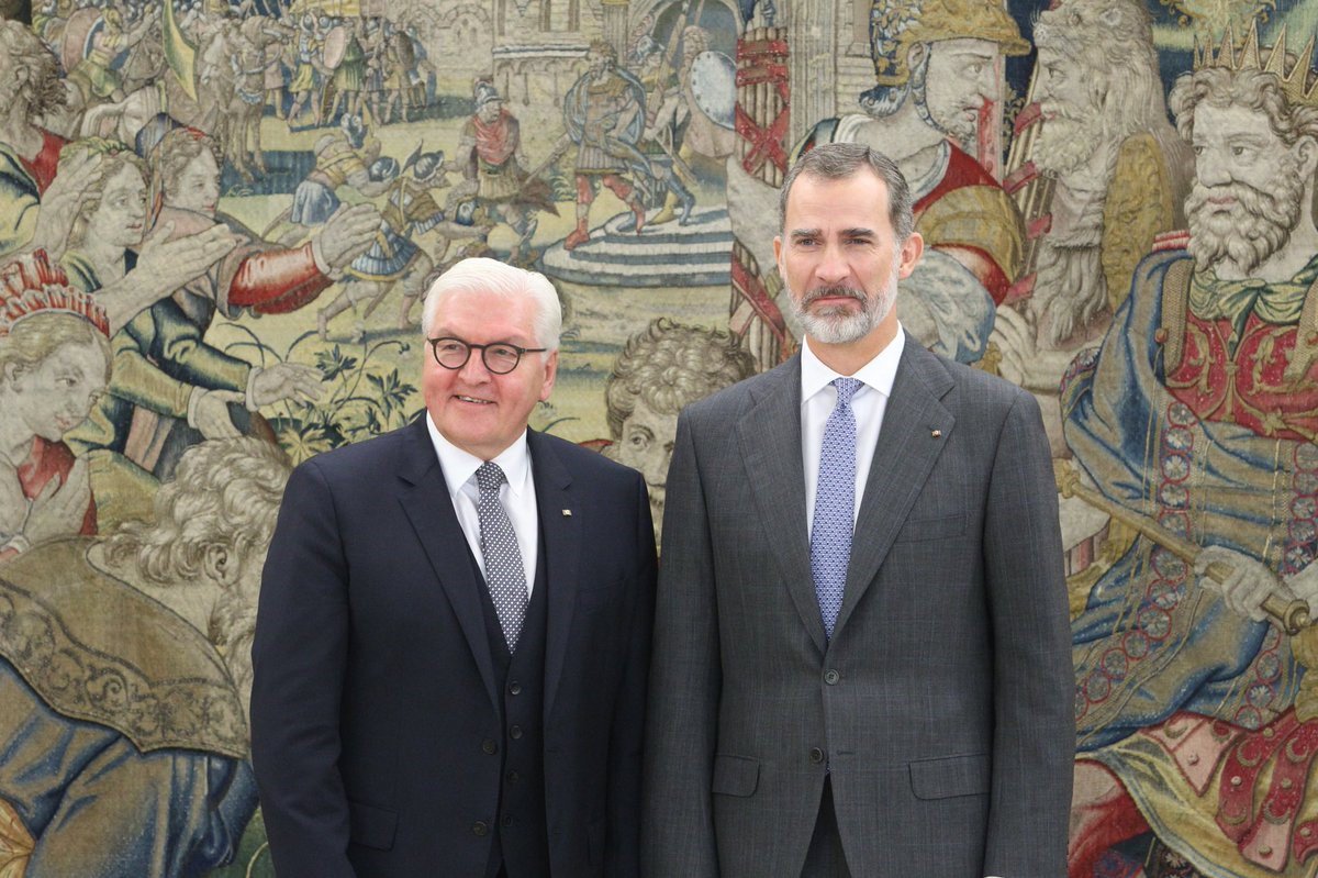 El presidente federal de Alemania, Frank-Walter Steinmeier, ha afirmado este miércoles que el deseo de los alemanes es que haya "una España fuerte, unida y estable" y, además, ha elogiado a Felipe VI como garante de estabilidad en tiempos turbulentos" y como "leal defensor de la democracia, el Estado de Derecho, de la sociedad abierta y de la integración europea".