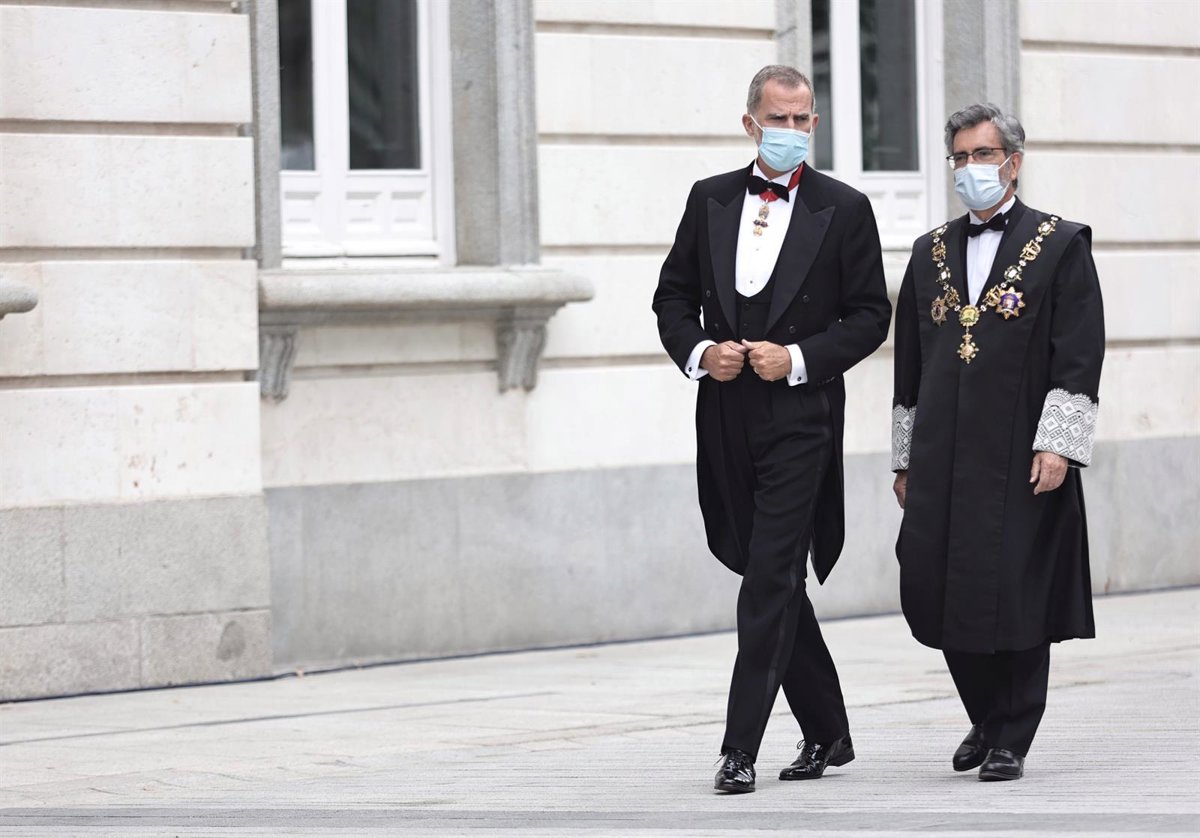EP- Selección fotos 2021: El Rey Felipe VI (i) y el actual presidente del Tribunal Supremo y del Consejo General del Poder Judicial (CGPD), Carlos Lesmes, a su llegada al Tribunal Supremo, donde hoy se celebra la apertura del Año Judicial 2020-2021, a 6 - Eduardo Parra - Europa Press