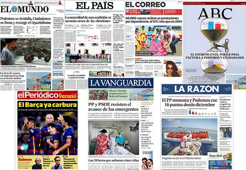 EL MUNDO: "Podemos se desinfla, Ciudadanos se frena y resurge el bipartidismo"; "15.697 cabezas nucleares después de Hiroshima"; "La lista de espera en dependencia llega ya al medio millón".
