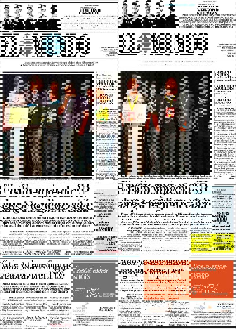 Las primeras ediciones de los principales periódicos llegados a nuestra redacción incluyen, entre otras, las siguientes noticias en sus portadas: