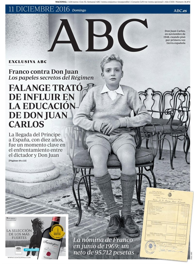 ABC: "Franco contra Don Juan. Los papeles secretos del Régimen. 'Falange trató de influir en la educación de don Juan Carlos'"; "La nómina de Franco en junio de 1969: un neto de 95.712 pesetas".
