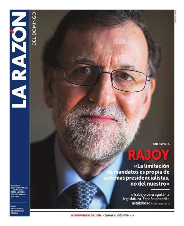 LA RAZÓN: Entrevista a Rajoy: "La limitación de mandatos es propia de sistemas presidencialistas, no del nuestro"; "Trabajo para agotar la legislatura. España necesita estabilidad".