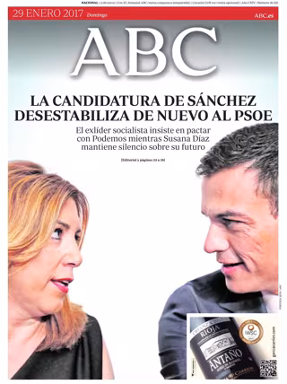 ABC: "La candidatura de Sánchez desestabiliza de nuevo al PSOE. El exlíder socialista insiste en pactar con Podemos mientras Susana Díaz mantiene silencio sobre su futuro".
