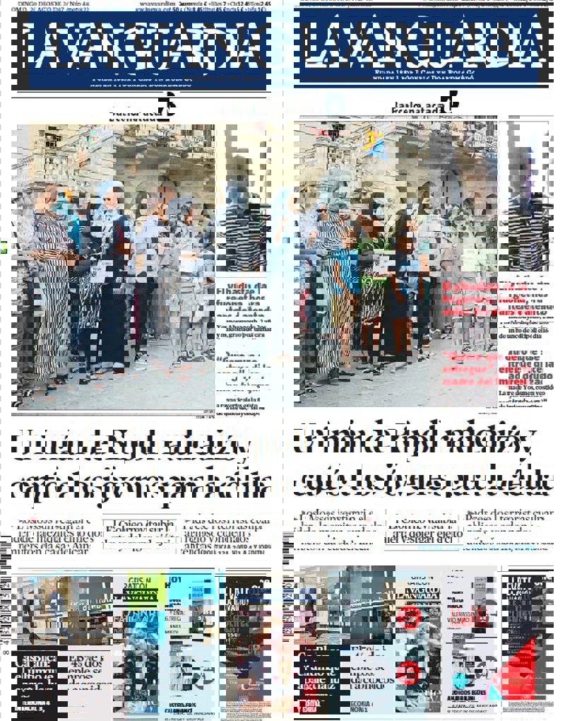 --LA VANGUARDIA: "Un imán de Ripoll radicalizó y captó a los jóvenes para la célula"; "El yihadista de la furgoneta, horas antes del atentado"; "'Quiero que se entregue', dice la madre del fugado"; "Casa Blanca: el último que apague la luz"; "El 45% de los empleos se da a conocidos".
