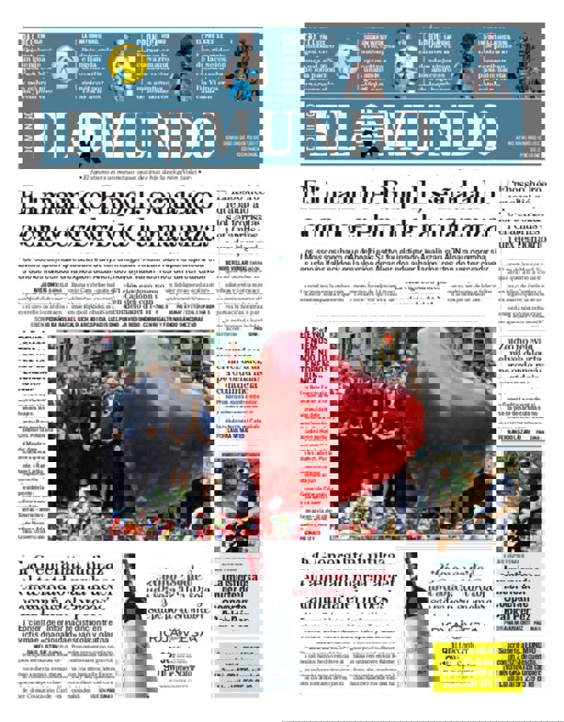 --EL MUNDO: "El imán de Ripoll, señalado como cerebro de la matanza"; "El Rey: 'No tenemos miedo ni lo tendremos nunca"; "La Generalitat utiliza el atentado para hacer campaña del 'procés'"; "El 'mosso' héroe que abatió a los 4 terroristas en Cambrils es un exlegionario"; "Zoido no eleva el nivel de alerta, pero ordena más contundencia"; "La misteriosa muerta del cooperante Pablo Pérez".