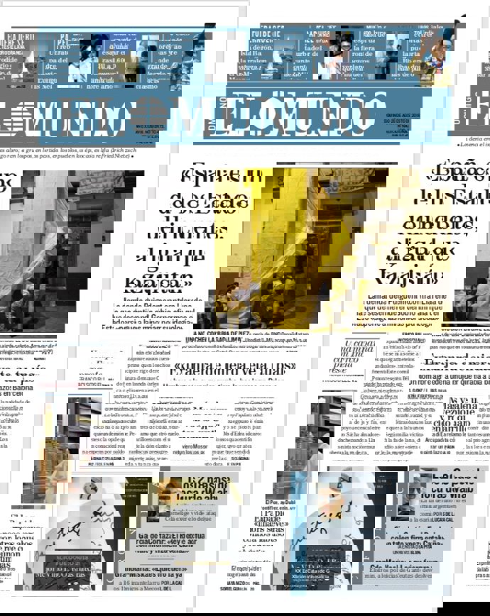 -- EL MUNDO: "Demanda de Puigdemont: 'España es uno de los Estados delincuentes, al igual que Kazajistán"; "Un hombre agrede a una mujer que tiraba lazos a la basura: 'Extranjera de mierda, vete a tu país'"; "El Papa pide 'normas severas' contra los abusos y se reúne con las víctimas".