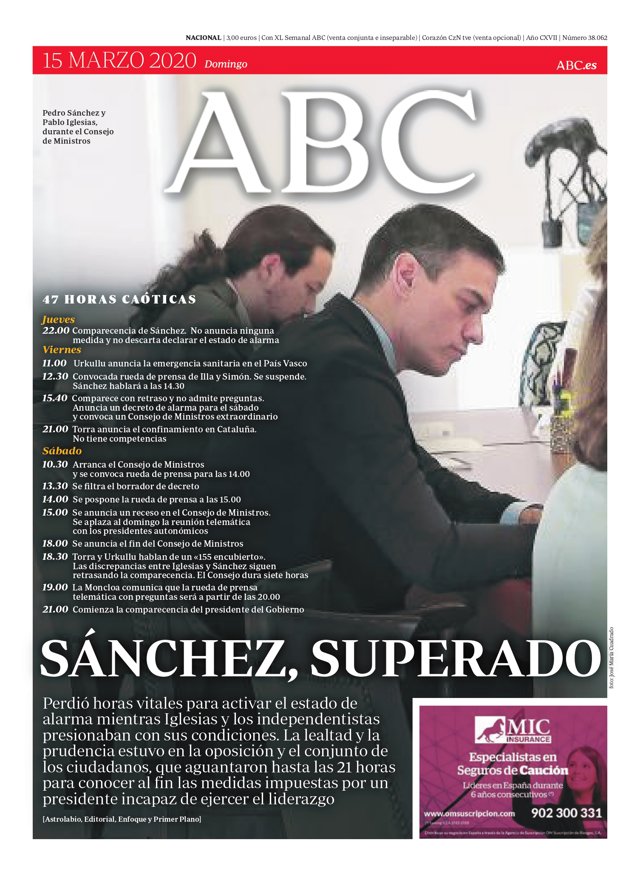 ABC: "Sánchez, superado"; "47 horas caóticas".