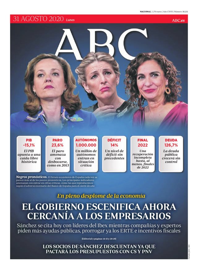 ABC: "El Gobierno escenifica ahora cercanía a los empresarios", "Los socios de Sánchez descuentan ya que pactará los Presupuestos con Cs y PNV".
