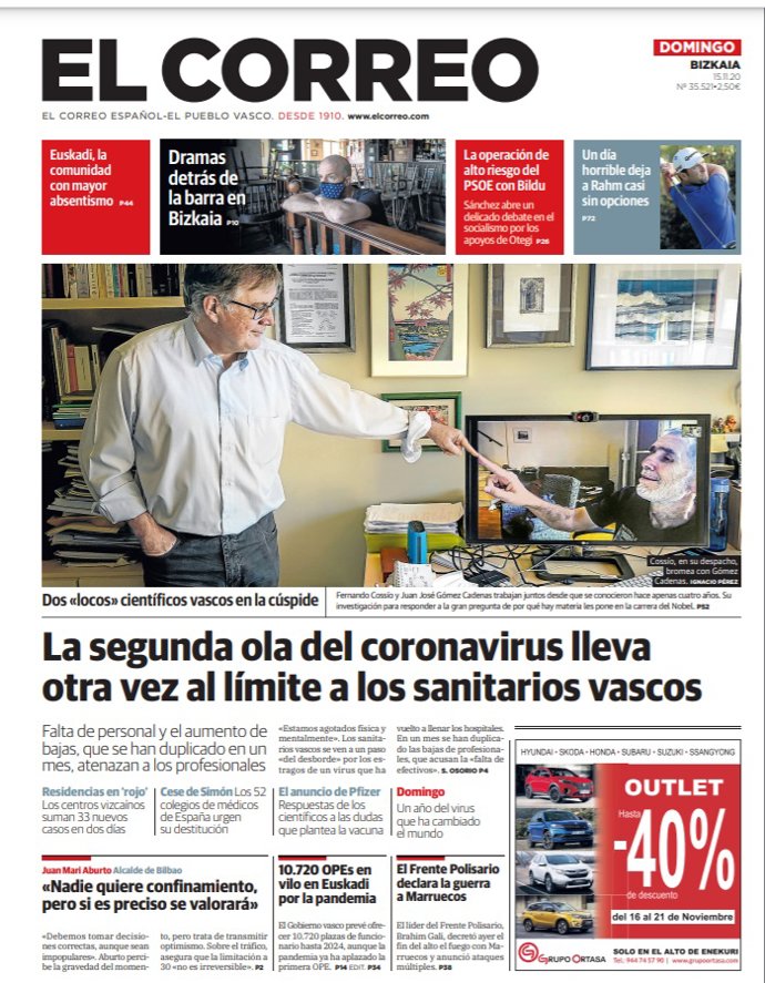 EL CORREO: "La segunda ola del coronavirus lleva otra vez al límite a los sanitarios vascos".