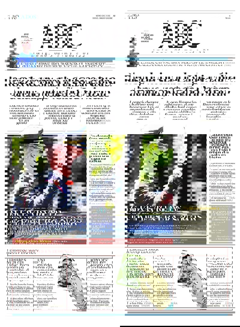 ABC: "Riesgo de cisma en la Iglesia católica alemana, que desafía al Vaticano"; "Los reyes, vitoreados el día de las fuerzas armadas"; "Casado remodela su equipo para rearmarse en la parte final de la legislatura"; "Más allá de aldeas: la banca huye también de los pueblos grandes"; "10-N: la campaña de la gran mentira de Pedro Sánchez"; "Rodrigo Cortés: 'Desconfío de todo aquello que no tenga humor'".
