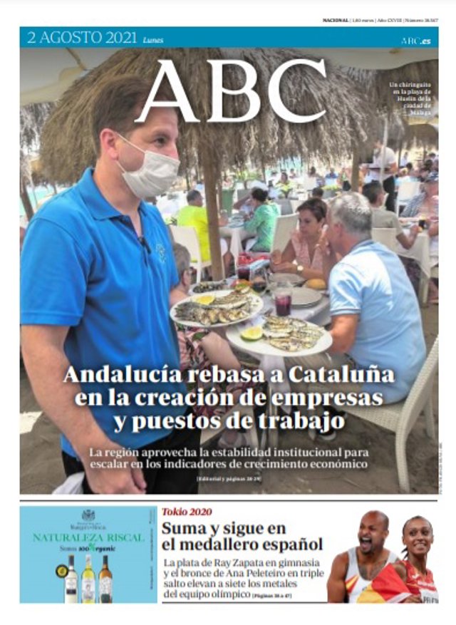 ABC: "Andalucía rebasa a Cataluña en la creación de empresas y puestos de trabajo"; "Suma y sigue en el medallero español".