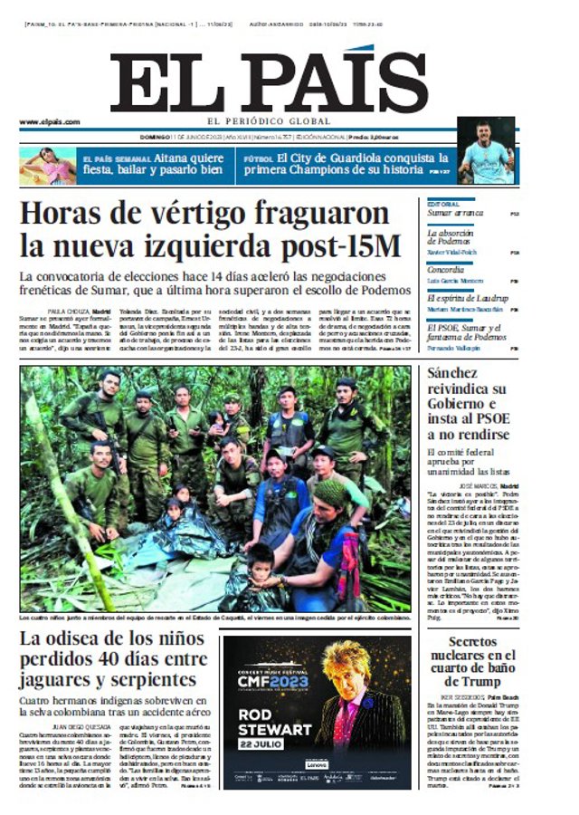 EL PAÍS: "Horas de vértigo fraguaron la nueva izquierda post-15M"; "La odisea de los niños perdidos 40 días entre jaguares y serpientes"; "Sánchez reivindica su Gobierno e insta al PSOE a no rendirse"; "Secretos nucleares en el cuarto de baño de Trump".