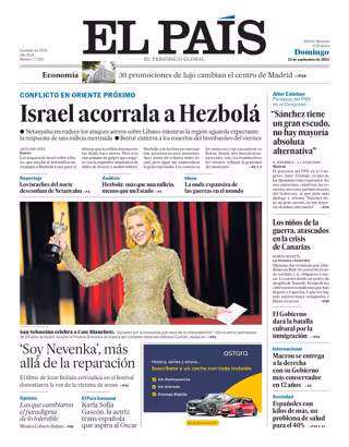 EL PAÍS: "Israel acorrala a Hezbolá"; "'Soy Nevenka', más allá de la reparación"; "Aitor Esteban Portavoz del PNV en el Congreso: 'Sánchez tiene un gran escudo, no hay mayoría absoluta alternativa'"; "Los niños de la guerra, atascados en la crisis de Canarias"; "Macron se entrega a la derecha con su Gobierno más conservador en 12 años".