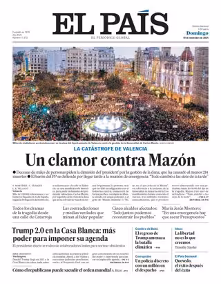 EL PAÍS: "Un clamor contra Mazón"; "Trump 2.0 en la Casa Blanca: más poder para imponer su agenda"; "Un policía discreto con un millón en el despacho": "Quevedo, el éxito después del éxito".