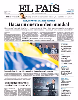 EL PAÍS: "Hacia un nuevo orden mundial"; "88 inocentes en las cárceles españolas en tres décadas"; "El canciller austriaco anuncia su dimisión ante el bloqueo para formar Gobierno"; "La pugna por la agenda marcará un año sin elecciones en España"; "De Casado a García Ortíz, la caza mayor de Miguel Ángel Rodríguez"; "Rafael Yuste, neurocientífico: <<Habrá personas mentalmente aumentadas y otras no>>"; "La federación y LaLiga rechazan la inscripción de Dani Olmo".