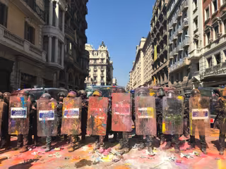 "Grupos de policías y guardias civiles y otros participantes han sido acorralados, teniendo que salir escoltados. Algunos de ellos han sido seguidos hasta sus coches, siendo acorralados por grupos de independentistas, rociados con gas pimienta y llegando a producirse agresiones físicas, contabilizándose varios lesionados", relata 'Unidad de Acción'.