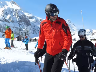Don Felipe está realizando la visita con unos amigos y a lo largo de la mañana ha esquiado junto con el director técnico de la estación, Roberto Roldán.