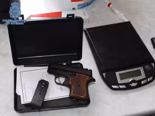 Así las cosas, se practicó el registro domiciliario del detenido en una localidad de Granada, en la que se intervinieron varios efectos tales como un televisor, una caja fuerte y en su interior varias bolsas de plástico con dinero fraccionado en diferentes monedas, un contador profesional de monedas y un arma de fogueo simulada, aunque con un correcto funcionamiento del arma.