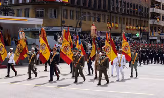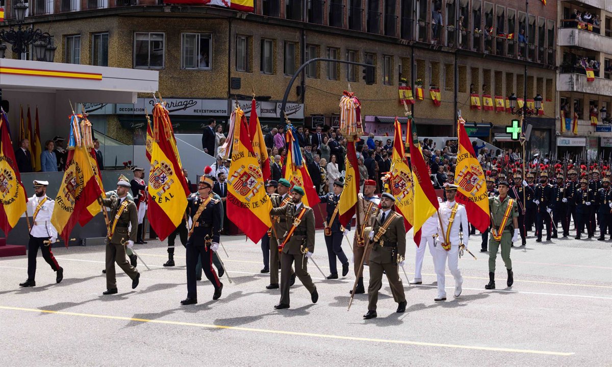 - Desfile a pie: 6 agrupaciones, incluyendo unidades de la Guardia Real, Armada, Ejército del Aire y del Espacio, UME, Guardia Civil y Regulares de Melilla