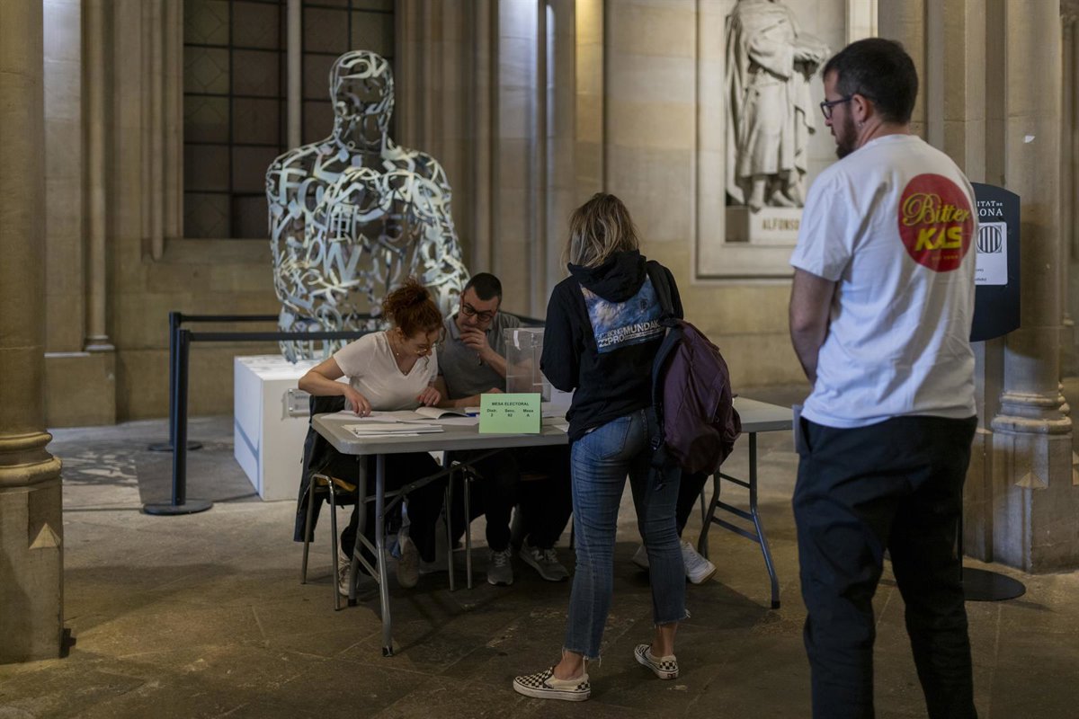 Varias personas ejercen su derecho a voto en la Universitat de Barcelona, a 12 de mayo de 2024, en Barcelona, Catalunya (España) - Lorena Sopêna - Europa Press