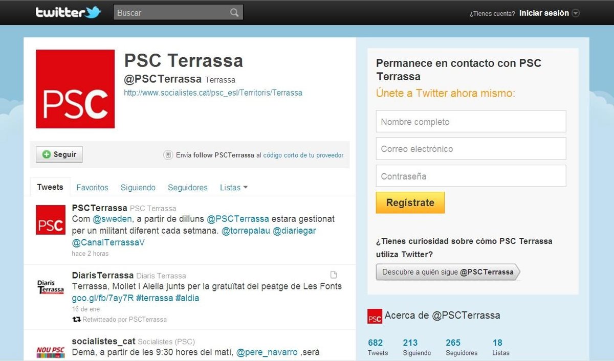El usuario '@PSCTerrassa' empezará a funcionar con este nuevo sistema a partir del 30 de enero, aunque a diferencia de la experiencia sueca que no tiene ninguna restricción temática, los mensajes publicados por los militantes socialistas tendrán que centrarse en temas políticos o referentes al municipio.