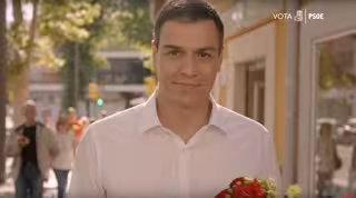 "Tu voto es el único sí que garantiza el cambio", dice el candidato socialista, Pedro Sánchez, en un mensaje a cámara con un ramo de flores en las manos. Todos los participantes en el vídeo: personas jóvenes, mayores y niños aparecen junto a más gente con ramos de flores en las manos y el vídeo concluye con un grupo de gente (flores en mano) en torno a la escultura de un Sí construida también con flores en una plaza.