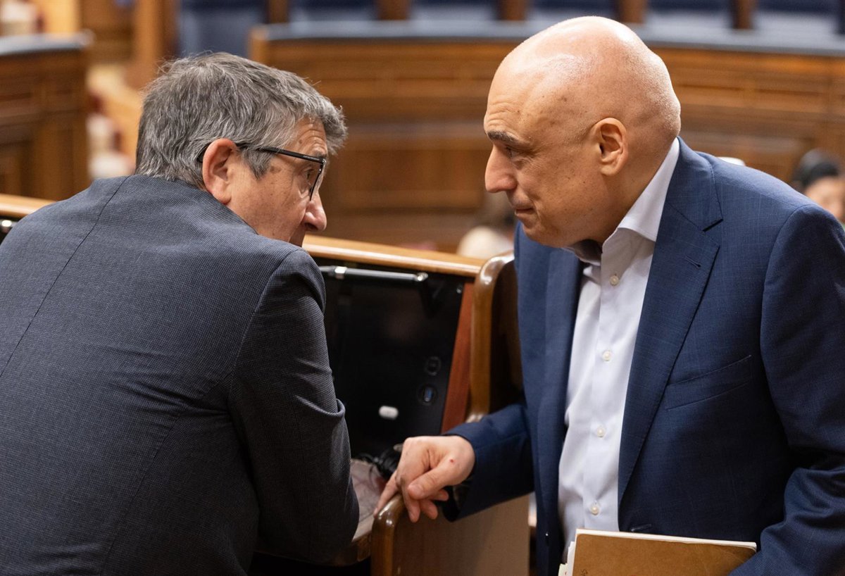 Archivo - El portavoz del PSOE en el Congreso, Patxi López (i), y el diputado del PSOE Rafael Simancas (d) conversan durante una sesión plenaria extraordinaria, en el Congreso de los Diputados, a 22 de julio de 2025, en Madrid (España). El Congreso cierra - Eduardo Parra - Europa Press - Archivo