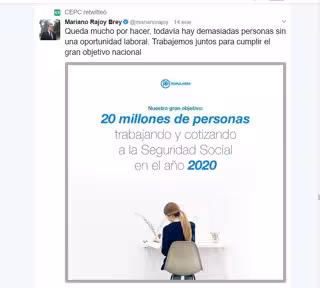 Y también presentaron preguntas escritas, los cuatro diputados de Compromís en el Congreso, quienes incluso adjuntaron el polémico retuit del 14 de enero de un mensaje de Rajoy que rezaba "Queda mucho por hacer, todavía hay demasiadas personas sin una oportunidad laboral. Trabajemos juntos para cumplir el gran objetivo nacional". El texto iba ilustrado con un anuncio, con el logotipo del PP, en el que se leía: "Nuestro gran objetivo, 20 millones de personas trabajando y cotizando a la Seguridad Social".