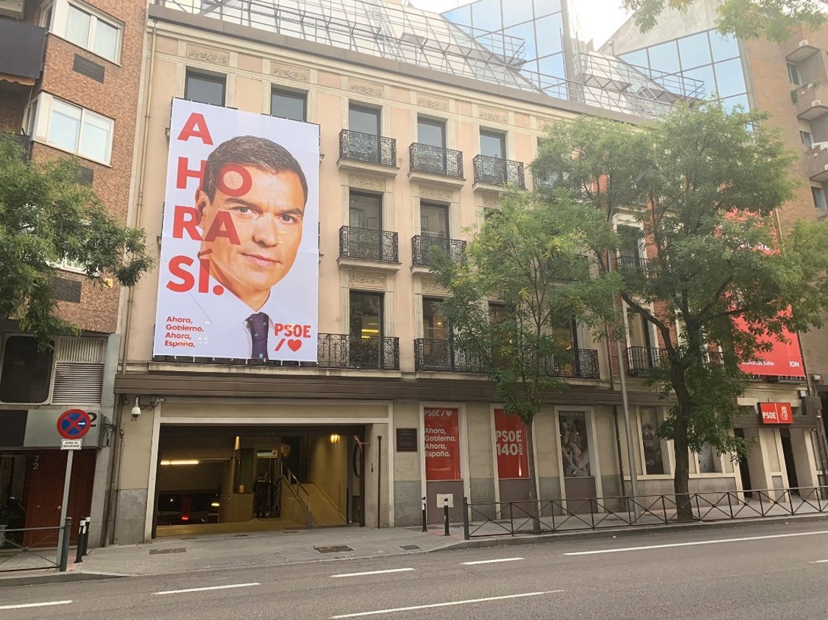 Archivo - Fachada de Ferraz con el lema de campaña - PSOE - Archivo