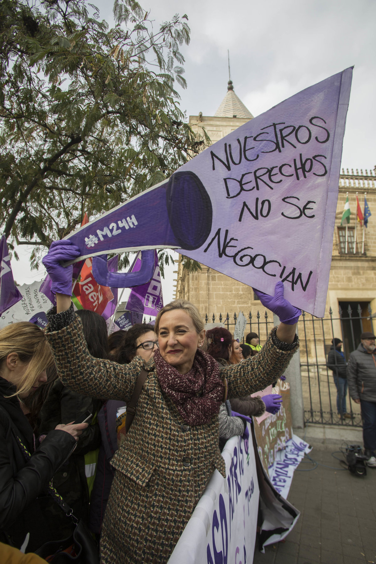 Concentración convocada por colectivos de mujeres bajo el lema '¡Nuestros derechos no se negocian. Ni un paso atrás en igualdad!'. Ante el Parlamento andaluz. - María José López - Europa Press