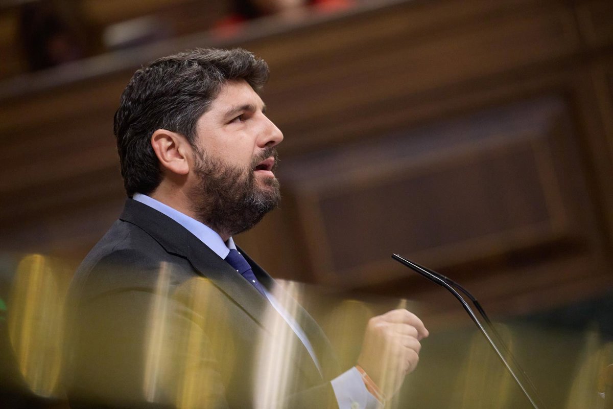 El presidente de la Región de Murcia, Fernando López Miras, al defender la ley murciana del trasvase en el Congreso - Jesús Hellín - Europa Press