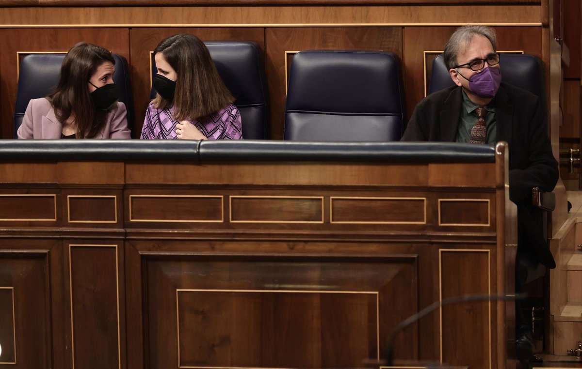 Archivo - (I-D) La ministra de Igualdad, Irene Montero; la ministra de Derechos Sociales y Agenda 2030, Ione Belarra; y el nuevo ministro de Universidades, Joan Subirats, en una sesión plenaria en el Congreso de los Diputados, a 28 de diciembre de 2021, e - Eduardo Parra - Europa Press - Archivo
